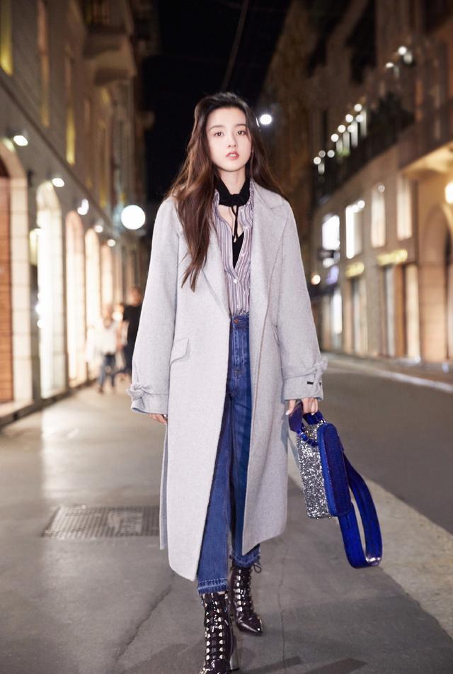 灰色韩版长款大衣+条纹衬衫+牛仔七分裤+马丁靴,具有质感的极简风格灰色大衣线条柔软,让宋祖儿的整体穿着更显明亮稳重,非常适合秋冬季节。条纹衬衫最能体现品味,解开了3颗扣子的衬衫露出若隐若现的黑色内搭,不仅添加了几分帅气和性感,还有拉长脖子的视觉效果。包包与牛仔裤的颜色相呼应,整体显色简洁,这一套穿搭非常有层次感,让人回味。