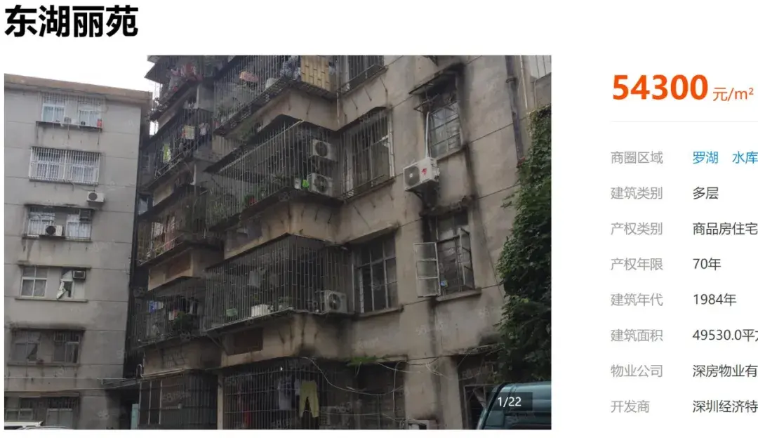 同年,国内第一个可供交易的商品房小区东湖丽苑在深圳罗湖区开工,中方出地,港方出资,户型面积50-60平米,主要面向港人,均价2730港元/平米,一套房10万港元,由于比香港房价便宜一半,房子瞬间卖光。