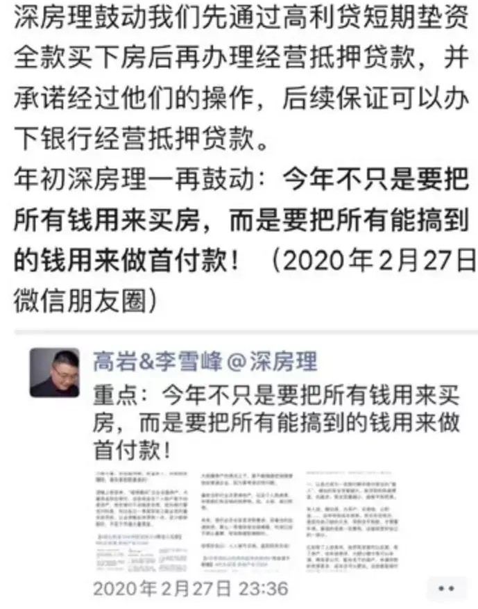 (思进注:温州炒房团先集中拿下几个楼盘,然后统一商量个高价报到当地二手房市场挂牌,让人们感觉房价涨了,同时内部订立 “同盟条约”,谁也不许低价出手,否则会被 “清理门户”。后来在自家楼盘边开房地产中介公司,专注炒高自家楼盘,本地人见房价飙涨,也就逐渐认同了高房价......温州炒房团很快被不少地方视为财神爷,一些地产商不惜提供包机,免费为炒房团提供一条龙服务,飞机轱辘一落地,房价应声大涨!深房理的收入来源:一是知识付费, “摇篮会员” 入会费是13800元,V+会员费用是3980元。二是从房价 “坐庄” 上涨赚到的钱中分得部分收入。三是帮忙找垫资公司凑齐首付款,从中赚到佣金收入......这片土地未来还会有不断地造富神话上演,面对这份喧嚣,我们一定要擦亮眼睛,对所有事情保持警惕,毕竟天上掉下的馅饼大多是有毒的……特转发下文,和大家分享……)