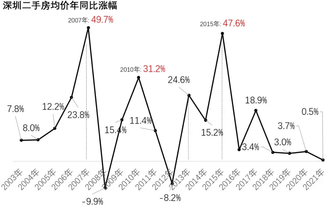 2006年,辽宁大连人李雪峰南下深圳闯荡,2013年以前,他历经餐饮公司、建筑公司,但都磕磕碰碰,生意相继失败,2015年,在 “二套房首付比例降至四成” 等楼市新政刺激下,深圳房价经历一轮暴涨(详见上图,同比14年上涨了47.6%)