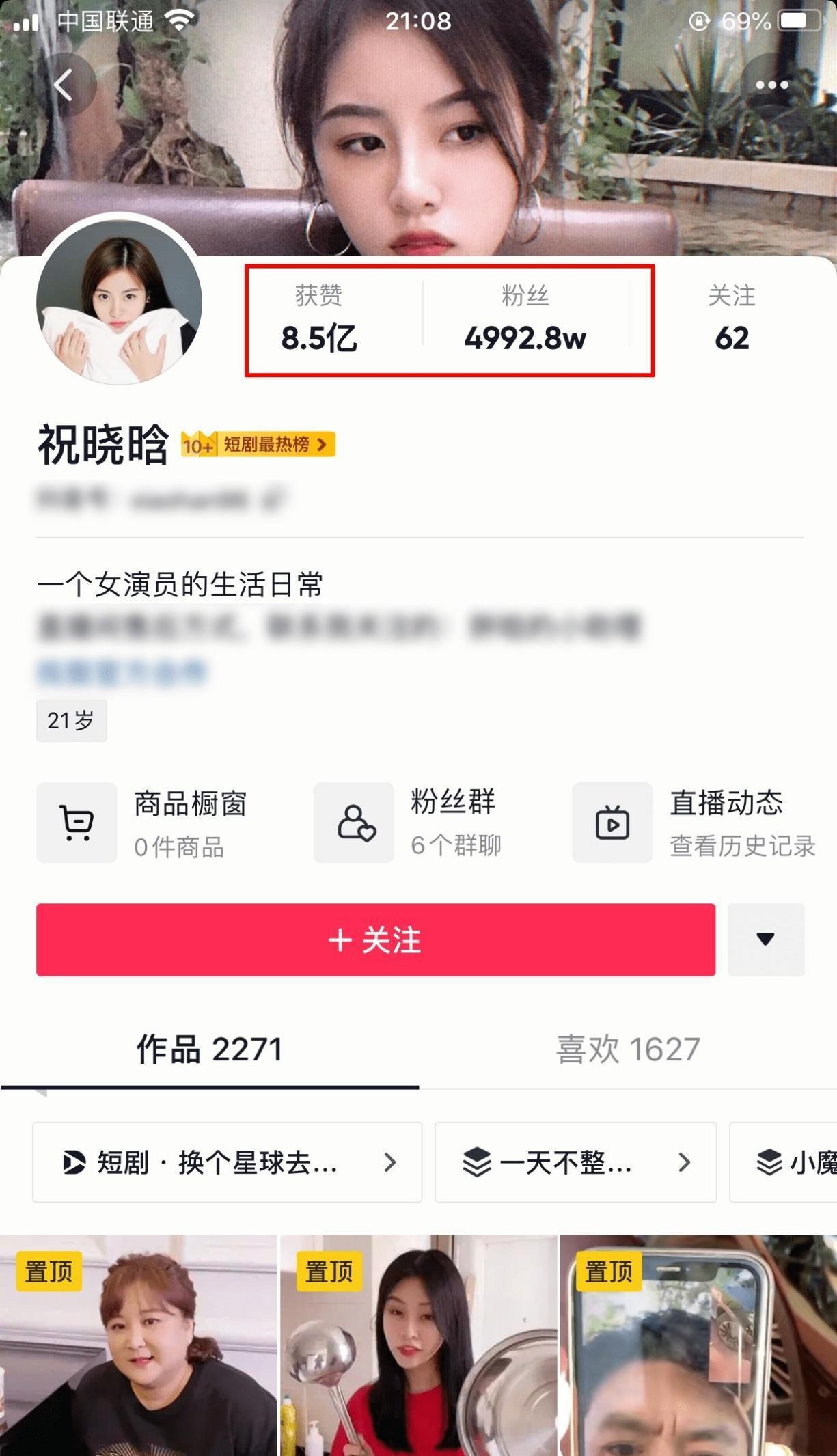 于是,祝晓晗账号的粉丝数量开始蹭蹭往上涨。
