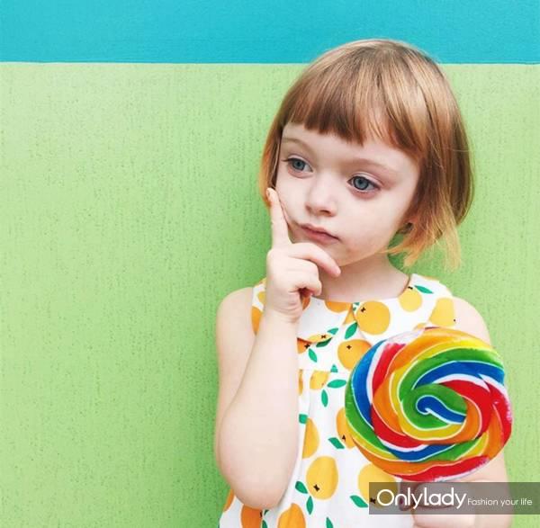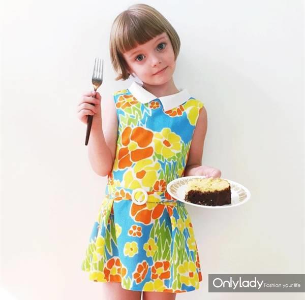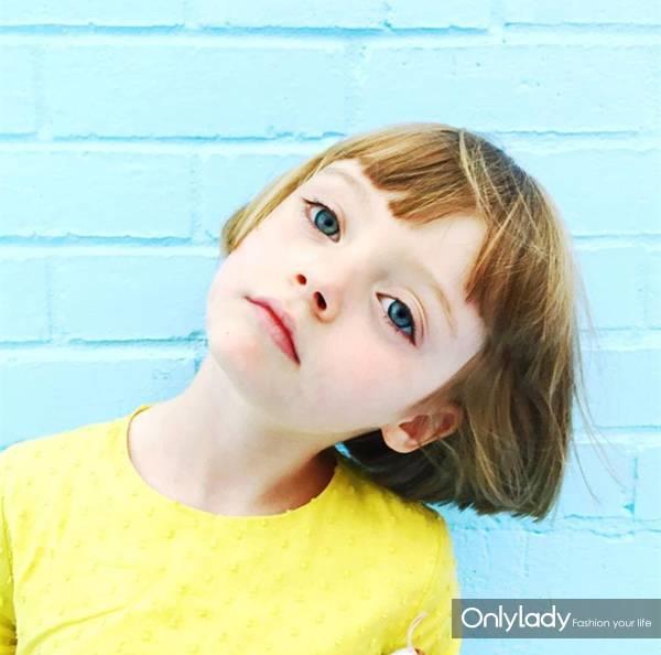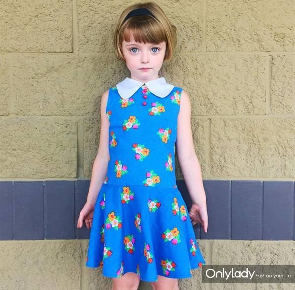 这位小萝莉名叫Olive Elise Abercrombie,金色的蘑菇头、蓝色的大眼睛都已成为Olive的标志。