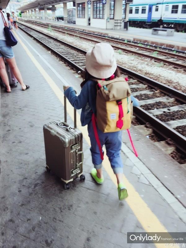 虽然年纪还小,但经常出去旅行的她每次都自己拿着行李箱,从来都不让爸爸妈妈担心。