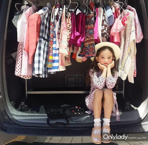 车里都挂满了衣服,可想而知她的衣柜是多少小女孩梦寐以求的地方。