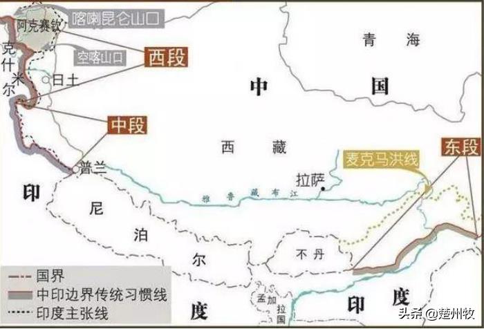 此时的印度也深处英国的殖民统治之中,自古以来西藏都是苦寒不毛之地,中印两国的重心从未放在喜马拉雅山附近,双方都默契的以喜马拉雅山为界,喜马拉雅山南麓为印度领土,以北为中国领土;加之印度国内政权从未统一也就无暇顾及北方边境,中国同印度的境遇差不多。