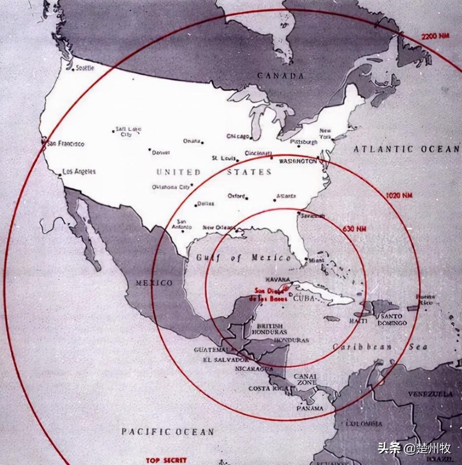 从7月开始苏联将几十枚导弹和几十架飞机拆解运往古巴,每一枚导弹都携带有相当于广岛原子弹20倍威力的核弹头。1962年10月14日美军侦察机在古巴发现有许多导弹发射井和永久导弹基地。10月22日美国总统肯尼迪发布广播讲话宣布武力封锁古巴,要求苏联在联合国的监督下撤走已经部署在古巴的攻击性武器,此时全世界的气氛都压抑到了极点,核战争的阴云笼罩在加勒比海上的这个岛国。