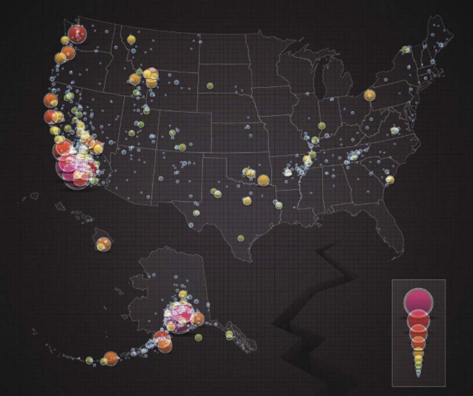 早在2008年的时候,美国地质勘探局就针对贯穿于加利福尼亚州的圣安德烈亚斯断层区域发生7.8级大地震进行了全面的模式说明,如果发生了里氏7.8级的大地震,持续时间约为3分钟,模拟地震将造成1800人死亡,5万人受伤,经济损失高达2000亿美元。