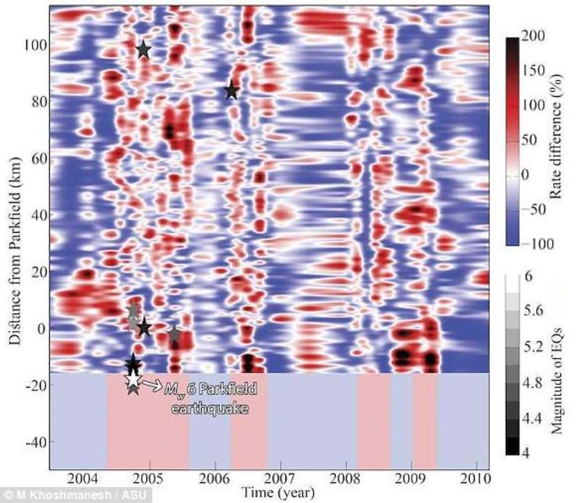 不过,这种现象说明了“超负荷”的承受力可能在出现,他们也公开指出了,地震可能从断层的南部开始,让断层带的活动加速,这对了解加利福尼亚中部的地震危险很重要。