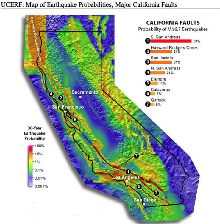 虽然这不是一次真实的地震预报,但加州在未来几十年内发生地震的可能性确实存在。美国地质勘探局也曾经发布了预报,加州未来30年内有可能发生里氏7.5级或超过7.5级的强烈地震,概率为46%。