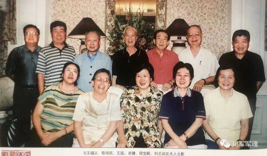 左起:安绍杰(刘贤权夫人),王书珍(王道平夫人),刘以明(肖健夫人),肖健,任枫影(范天恩夫人),徐佩环(苗敬芬夫人),高颖(牟立善夫人),杨曼珍(陈忠孝夫人),江文(于敬山夫人),王西欣军长,何云(吴岱夫人),张文清(刘海清夫人),皮新华(朱家礼夫人),吴刚政委,凡平(邢泽夫人),张毅(徐炜夫人),任荣夫人。