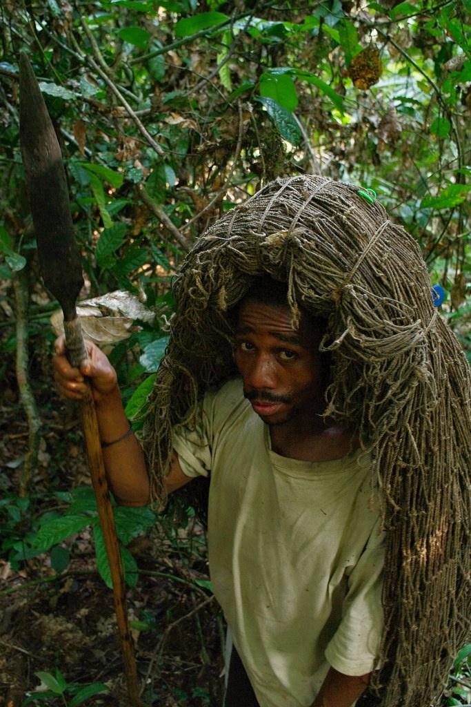 俾格米人的生活所需都来自森林,男人们擅长用网捕猎。网很长,是用植物纤维编制的。