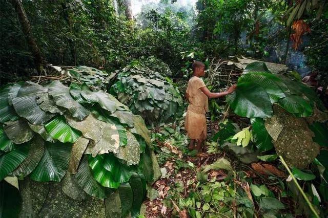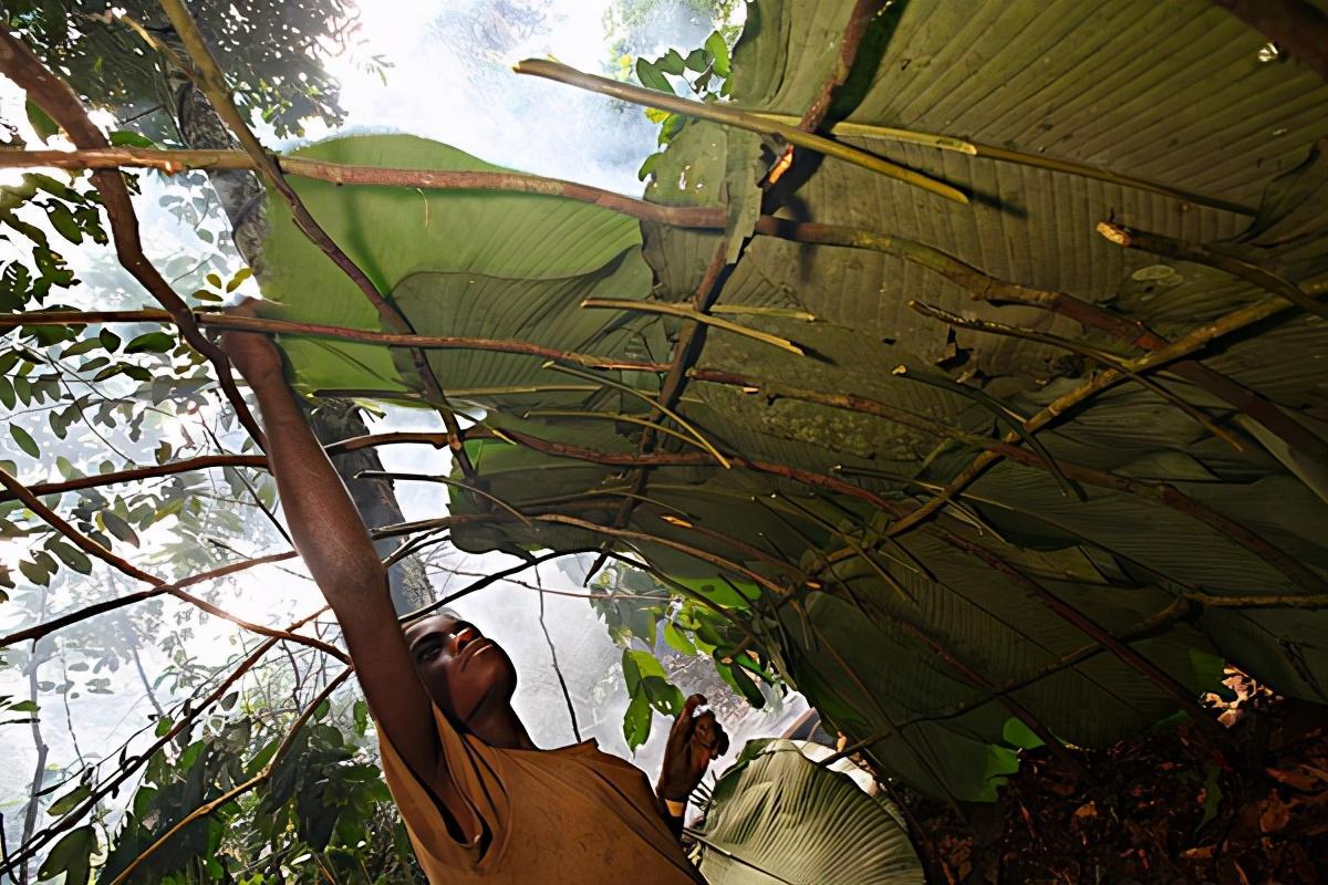 比如他们造房子的方式,俾格米人用弯曲的树枝搭建房屋的骨架,然后在上面铺上树叶,一座房子就造好了。不过这种房子容量有限,一般只能勉强够一家人居住。