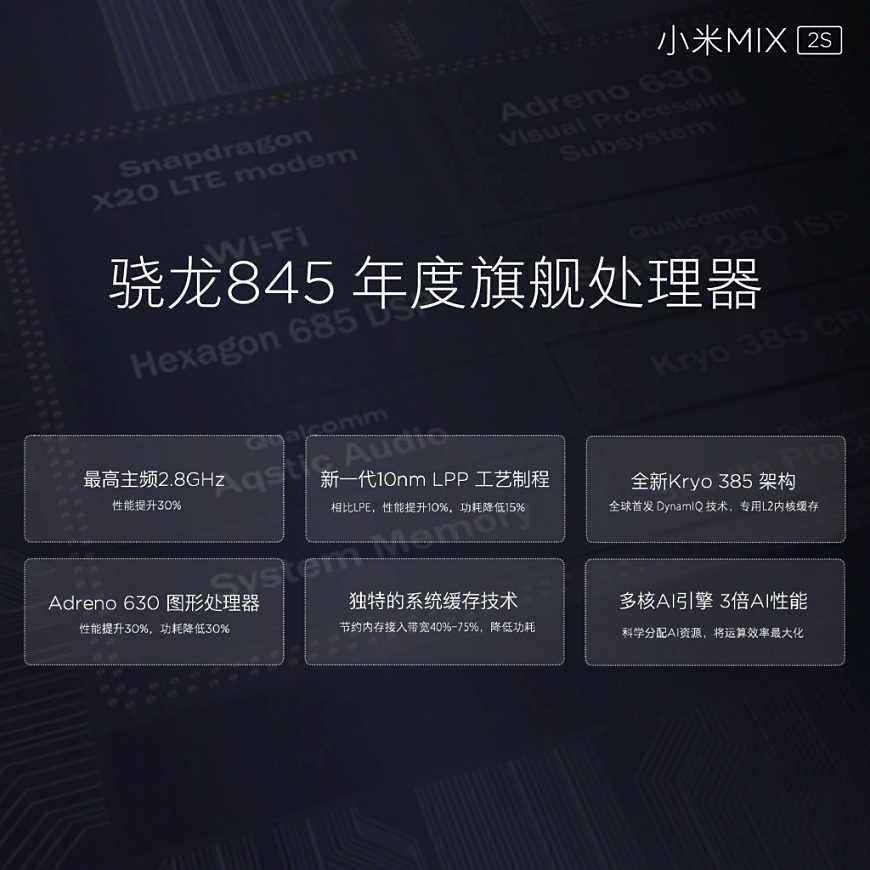 Kryo280架构,大核心频率2.45GHz,大核心簇带有2MB的L2 Cache,小核心频率1.9GHz835处理器,支持Quick Charge 4快速充电最高支持 4K 每秒 30 帧超高清视频拍摄,支持Qualcomm® WiPower™ 无线充电。安兔兔跑分成绩为200000分