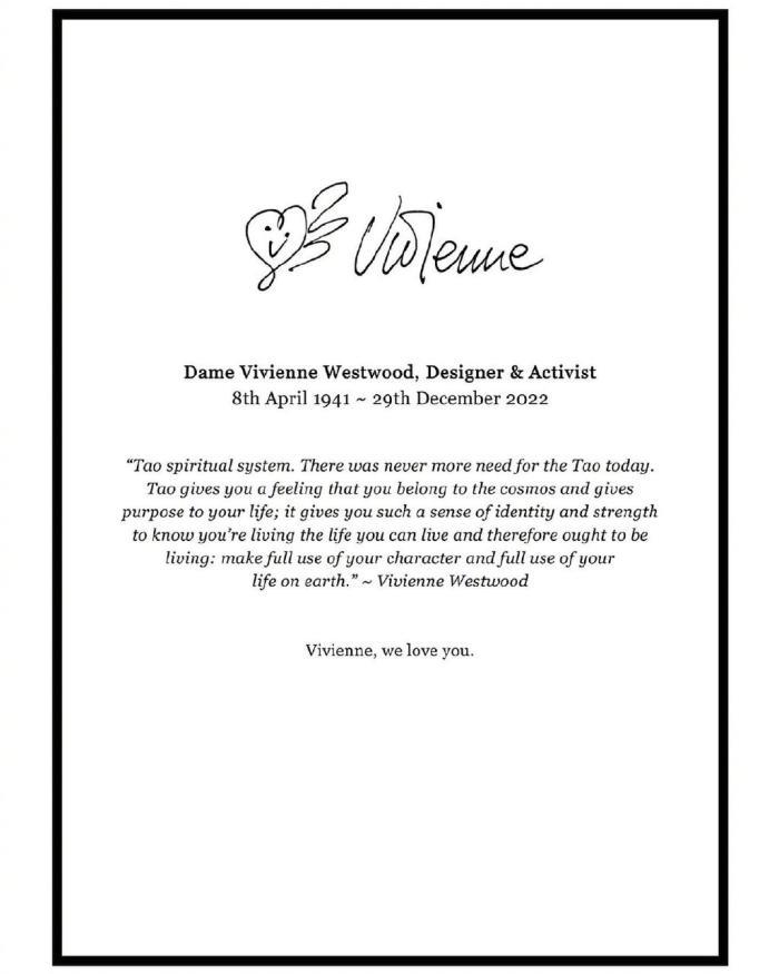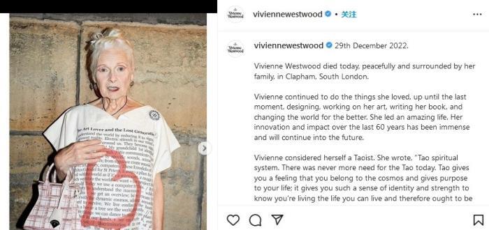 逝者 - 著名服装设计师“朋克教母”Vivienne Westwood昨日去世