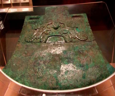 我第一次对钺引起极大的注意是在首都博物馆参观妇好墓文物特展的时候。首博的布展一向有水准,气氛营造得好,灯光打得很好。进展厅之前不管是什么心情,只要一进展厅立刻就心旷神怡了。当时看到一柄青铜大钺,以青铜器的重量,再加上长柄,觉得肯定是个力气特别大的将军才能拿得动。而妇好还是一位女士,居然有如此神力,心里顿生敬佩。