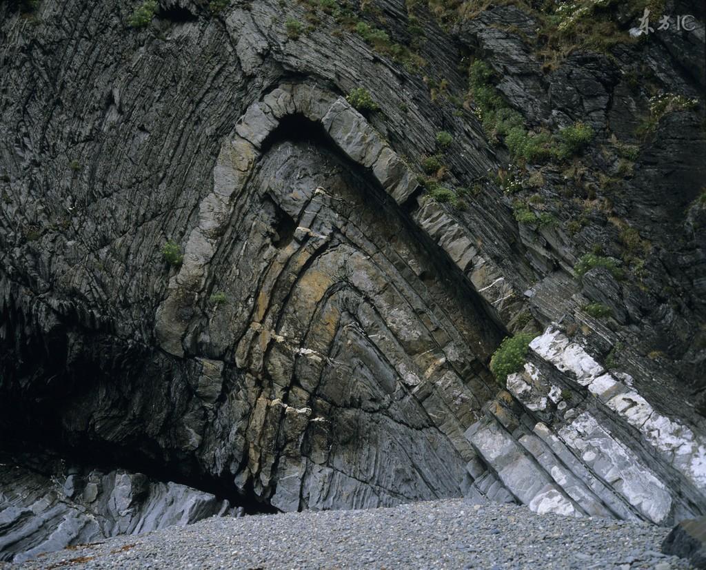 但是这里需要注意的是,如果褶皱岩层的新老层序不明,或是褶皱的变形面不是层面而是其他构造面,则只能将向上弯曲的褶皱面称为背形,向下弯曲的褶皱面称为向形。