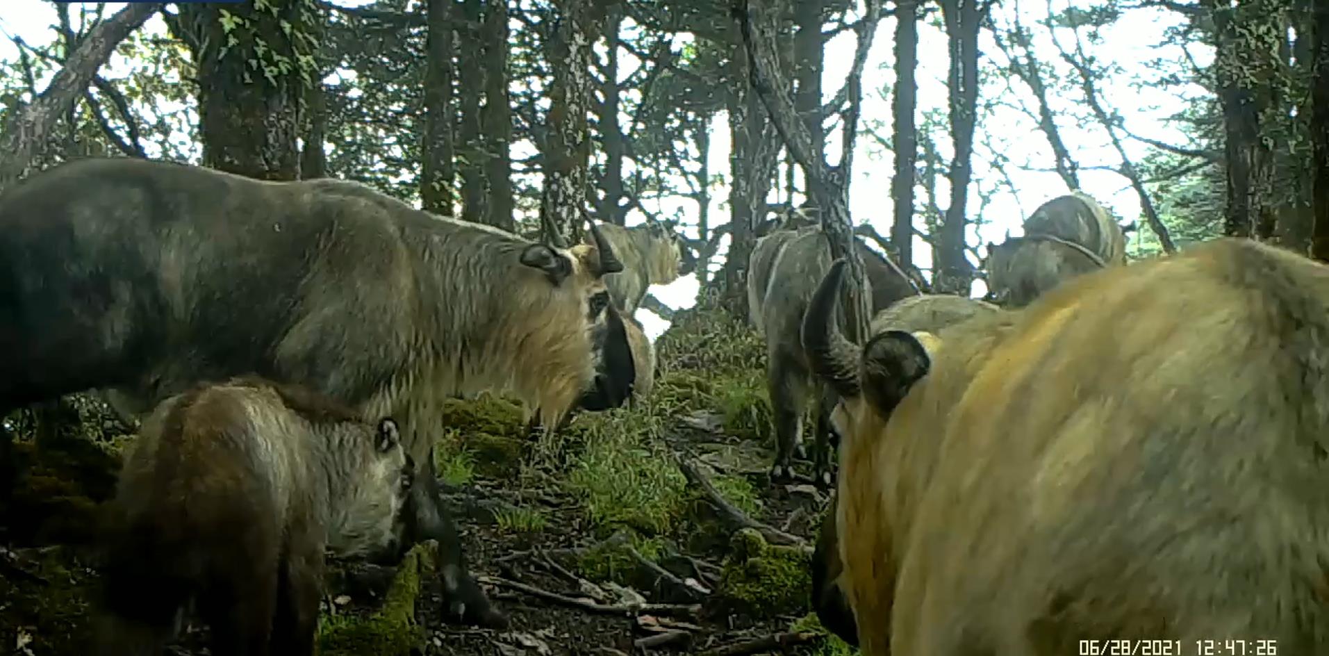据雅安宝兴县的大熊猫国家公园蜂桶寨片区的相关工作人员表示,其实发现如此大的“六不像”神兽群也比较偶然,也让当地吃惊,有点喜出望外。工作人员也没有亲眼看到,是在整理收回的红外线相机影像资料的时候发现。其中两台红外相机拍摄到了野生“六不像”神兽集体觅食的画面,可谓十分珍贵。