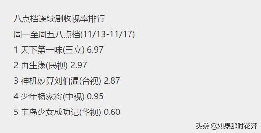 此为台湾收视率,可以看到排在倒数第二