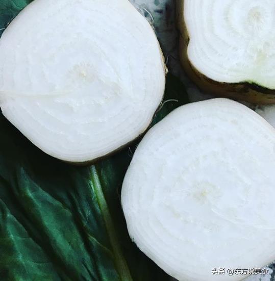 这种白色的甜菜根,没有红色版的泥土味。白甜菜经常被用作糖用甜菜或白化甜菜的名字,具有甜、嫩的味道和口感。