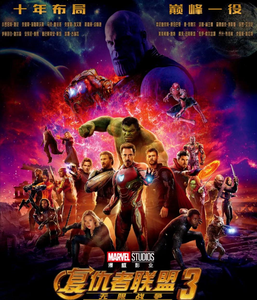 史上第一超级英雄大乱燉的《复仇者联盟》系列最为耀眼,该系列共有3部影片杀入前十。