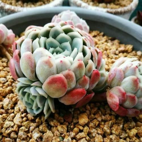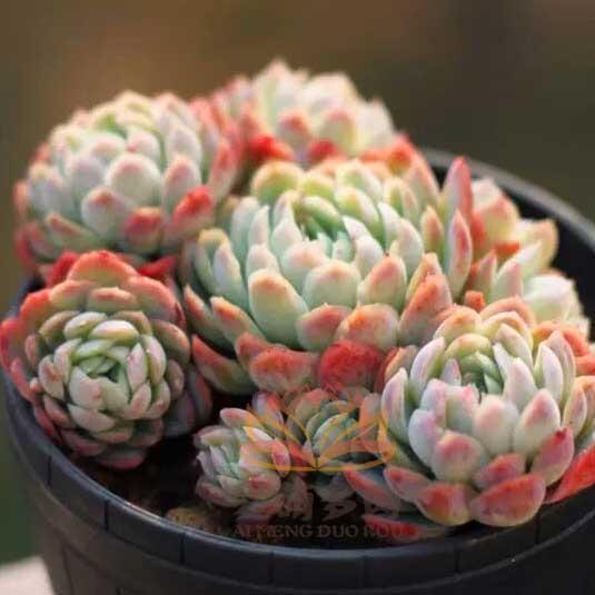 冰梅,为景天科拟石莲属多肉植物,月影系杂交品种,叶片排列紧密,有白粉,整株叶片向中心合拢,呈淡蓝色,温差大或休眠期时,叶片有红润。
