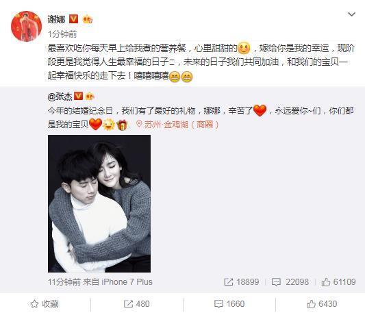 今日,张杰在微博上高调宣布妻子谢娜已经怀上了自己的孩子。当然,张杰选在今天,也是因为9月26日正好是二人的6周年结婚纪念日。这次张杰在微博上也没有闲着,宣布妻子谢娜怀孕:“今年的结婚纪念日,我们有了最好的礼物,娜娜,辛苦了,永远爱你们,你们都是我的宝贝。”