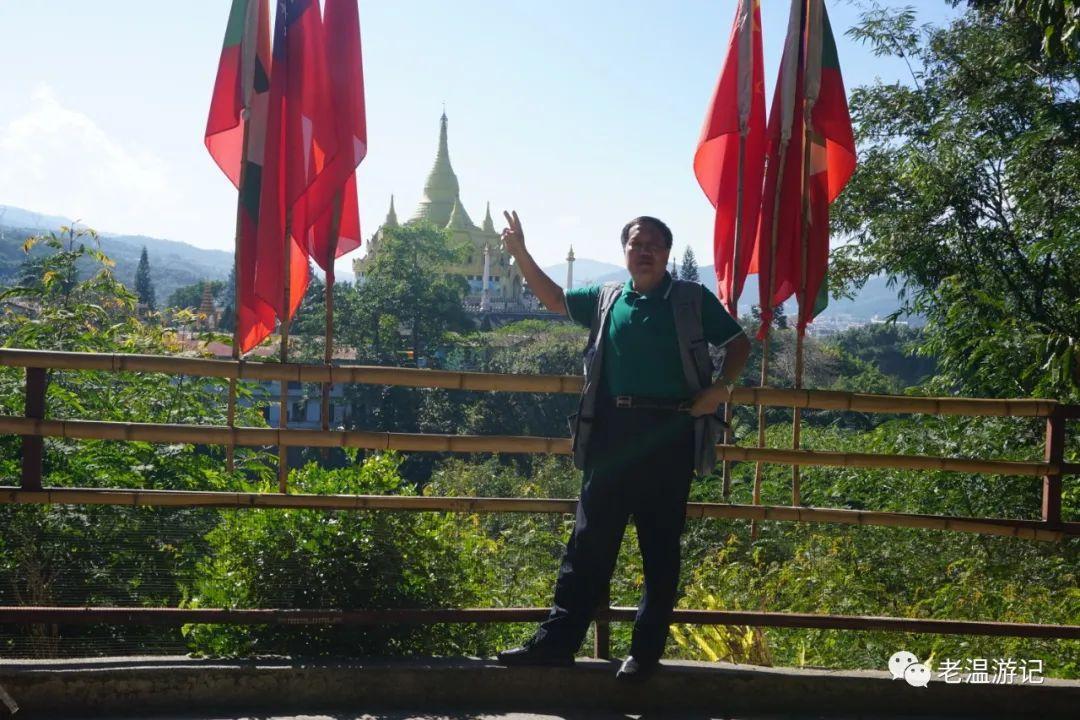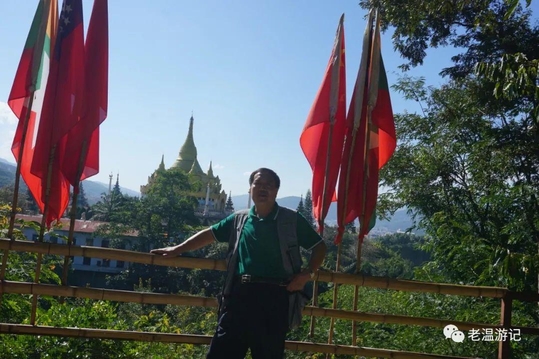 王斌同学以第四特区首府勐拉境内金连山上中缅友谊大金塔为背景留影。