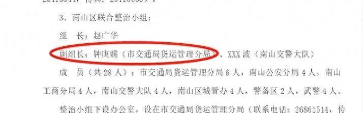 赵广华同时还担任了行动指挥部的副指挥和南山区联合整治小组的组长,而当时的副组长正是钟庚赐,时任市交通运输局货运分局局长。