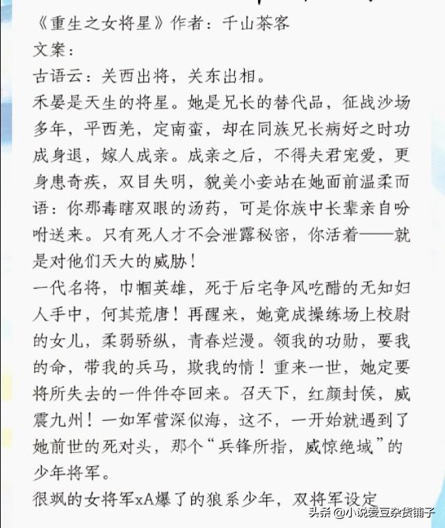 盘点三本女主是将军的小说,推看《重生之女将星》,红颜封侯!