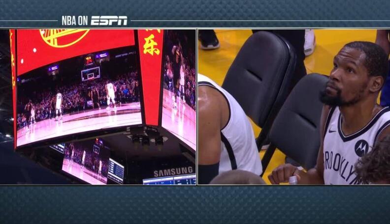 首节暂停期间,勇士播放视频致敬,杜兰特也挥手向观众席的家人朋友挥手。