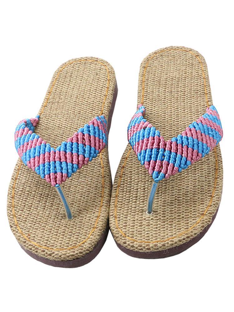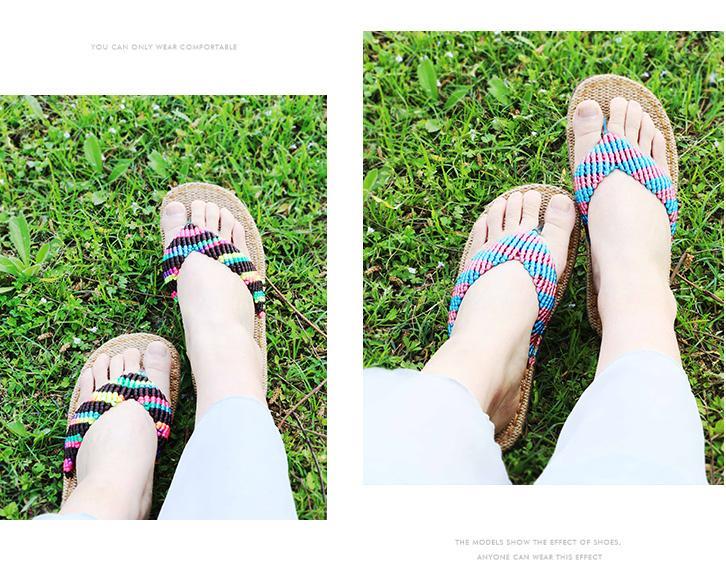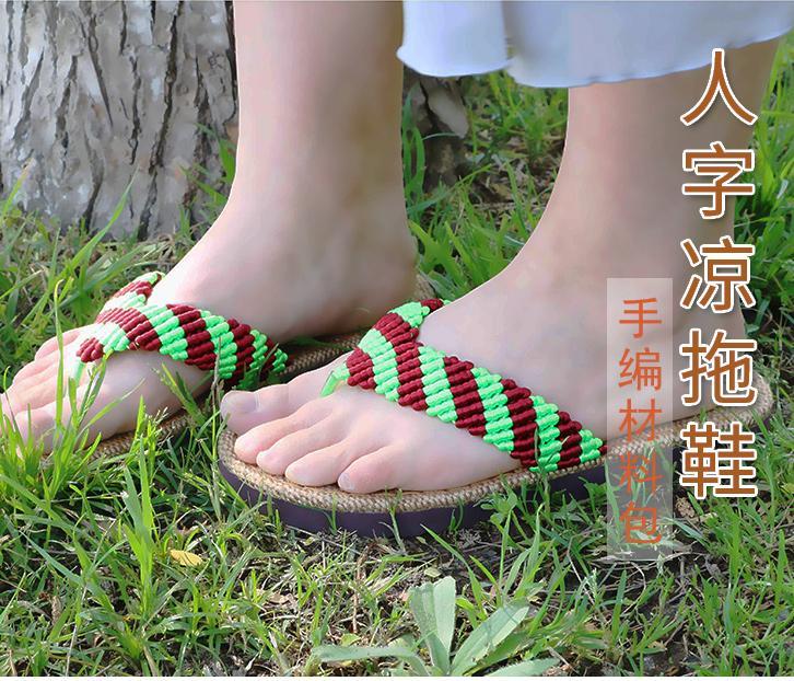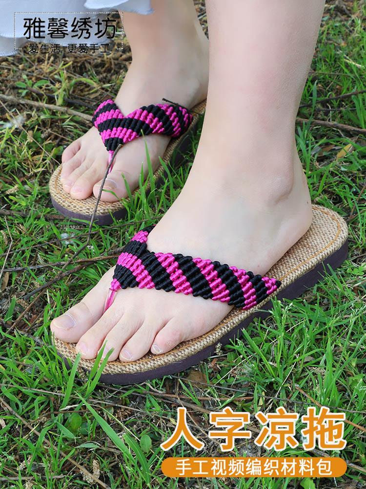 雅馨绣坊夏亚麻底钩针手工男女士人字拖凉拖鞋手工编织视频材料包