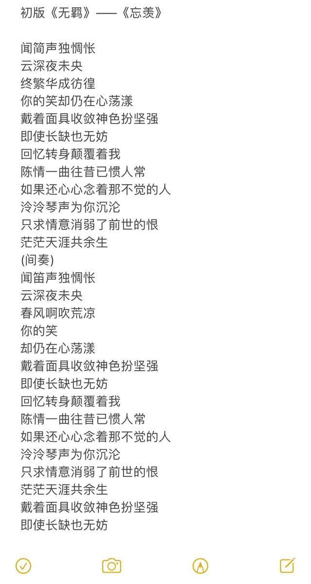 今日讨论话题:你喜欢《无羁》初版的歌词还是中版的歌词?