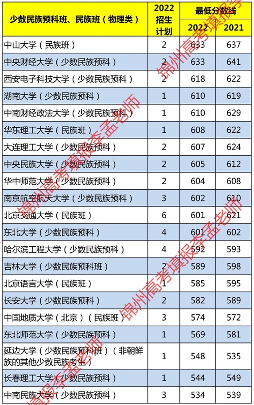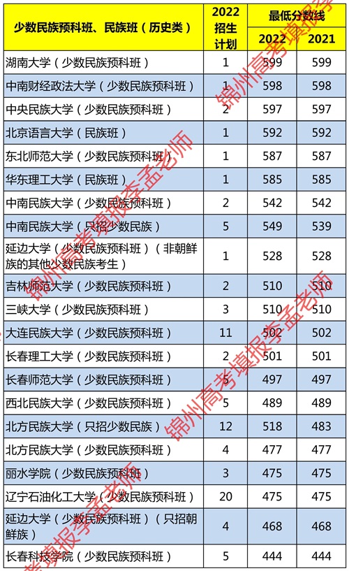 以下为锦州高考规划李孟老师整理的2022/2021辽宁【少数民族预科班、民族班】的分数线,供锦州考生和家长参考!