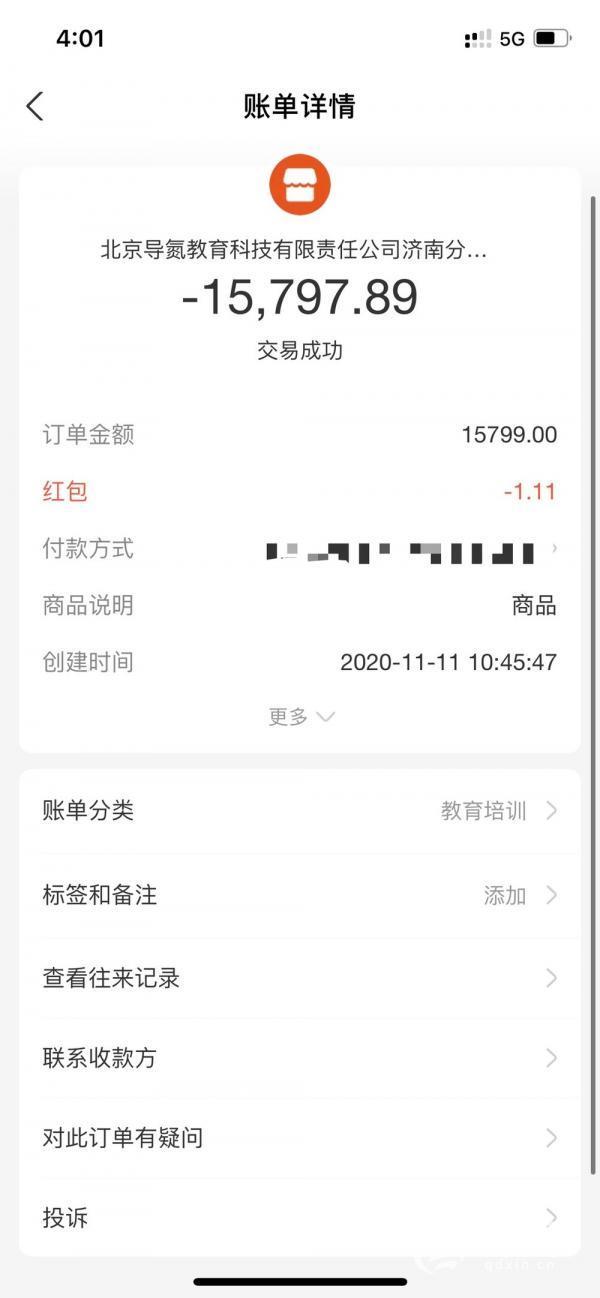 2020年11月,乔女士在北京导氮教育济南分公司交纳了15799元报名了“笔试面试班”,按照双方协议,如乔女士“公考”不过,北京导氮教育济南分公司将在20个工作日退还学员部分培训费用8000元。但截至目前,距离最后一次公务员补录已过近3个月,没通过公务员考试的乔女士仍未收到北京导氮教育济南分公司的退款。