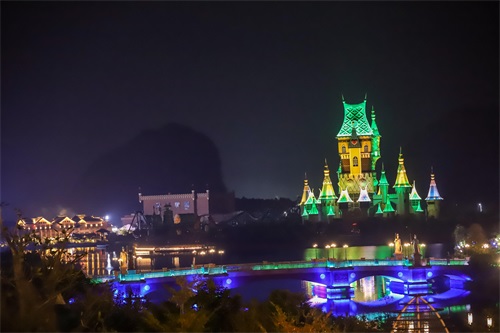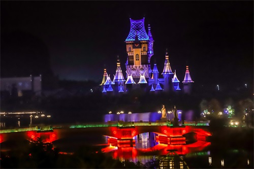 这座城堡是以迪士尼动画片头做参照物打造的。特别是夜晚,会有城堡灯光秀,非常好看。