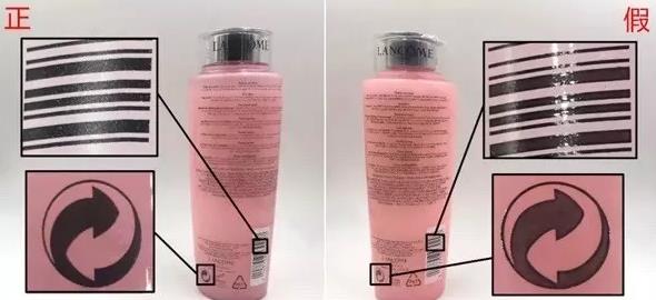 条码的部分区别不大,就是假的兰蔻粉水文字比较不清楚,特别是兰蔻下面那个PARIS字体不一样,也比较小,不要相信什么手机扫条码软件,假的那个也可以扫出来的。