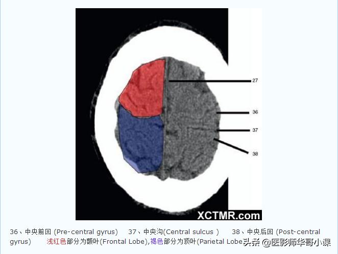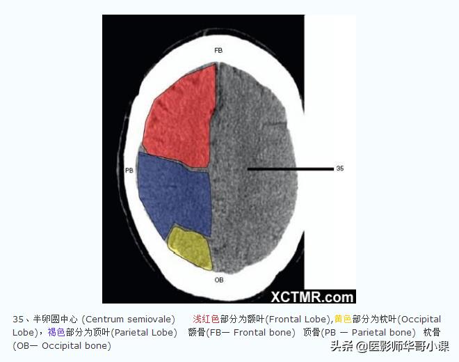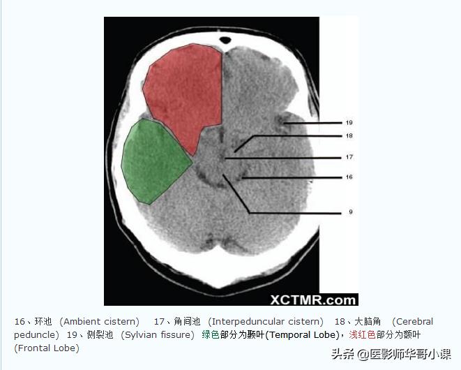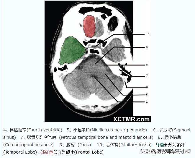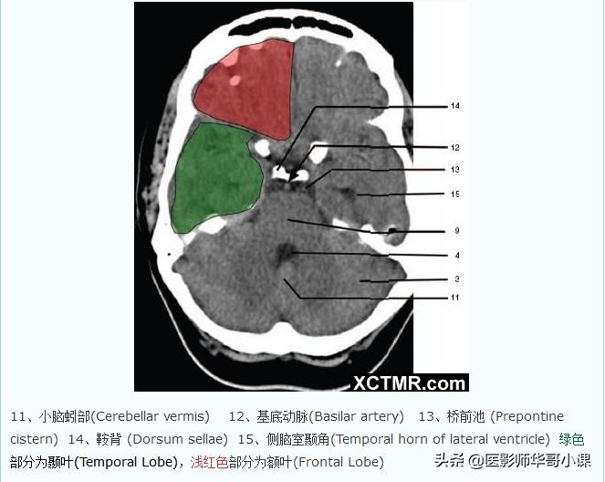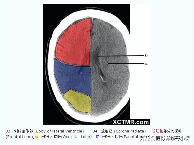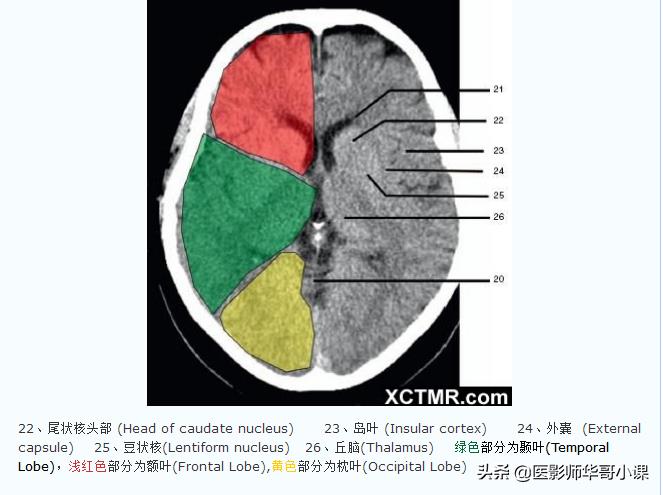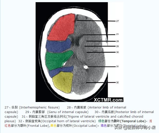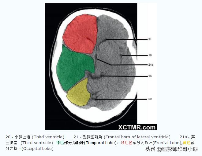 「高清CT图」头颅CT色彩分叶解剖示意图