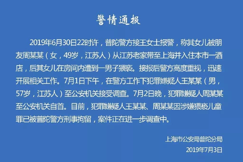 昨日21时许,上海普陀警方通报,王某某因涉嫌猥亵儿童罪已被普陀警方刑事拘留,案件正在进一步调查中。