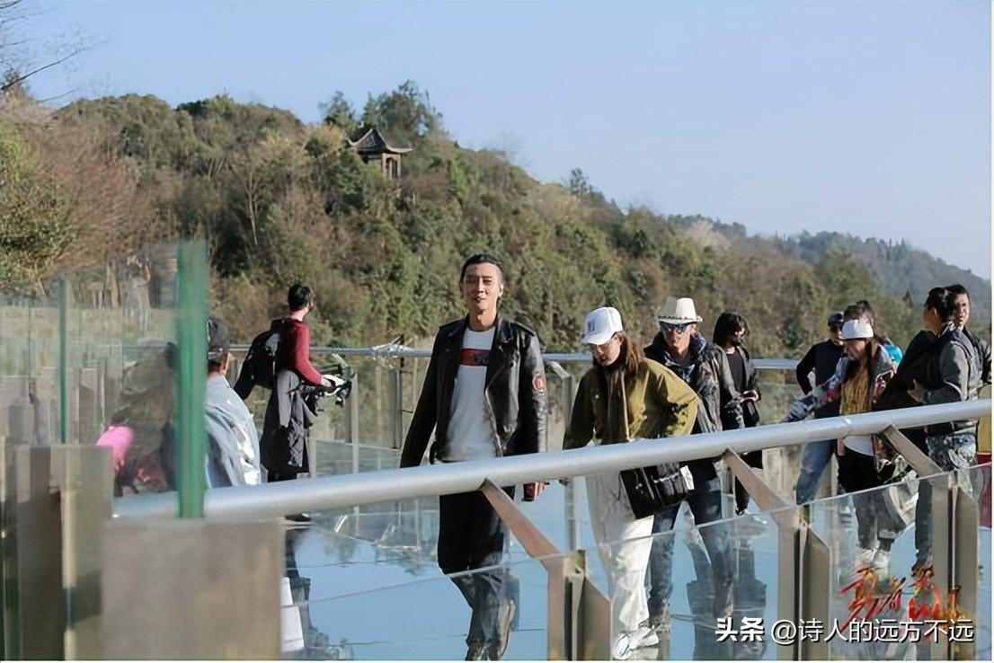 剧照中拍摄的玻璃眺台是武隆当地比较有特色的景点,单体面积规模属世界最大,悬空高度达280米,相当于近100层的楼层高度。