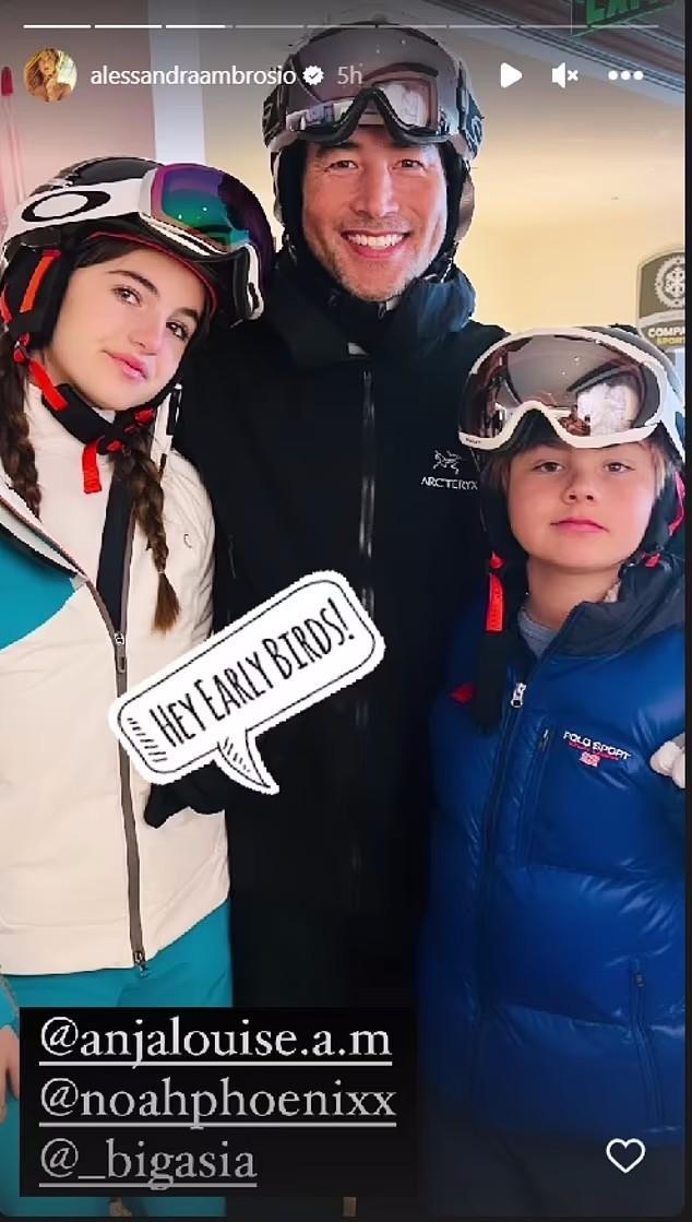 维密天使AA最近带着一双儿女还有亚裔男友正在度假,去的是滑雪胜地。AA自从和亚裔男友恋爱后,两人每次都很腻歪,而这次AA和男友各种秀恩爱,自己的一双儿女倒是成了电灯泡了。
