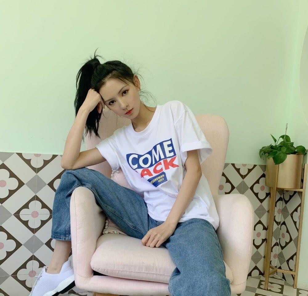 对于休闲风穿搭,张予曦一样不落俗套,白色字母印花T恤搭配宽松蓝色牛仔裤,搭配随性自然的高马尾,完全看不出29岁的样子,就是个青春无敌的十八岁美少女吧~