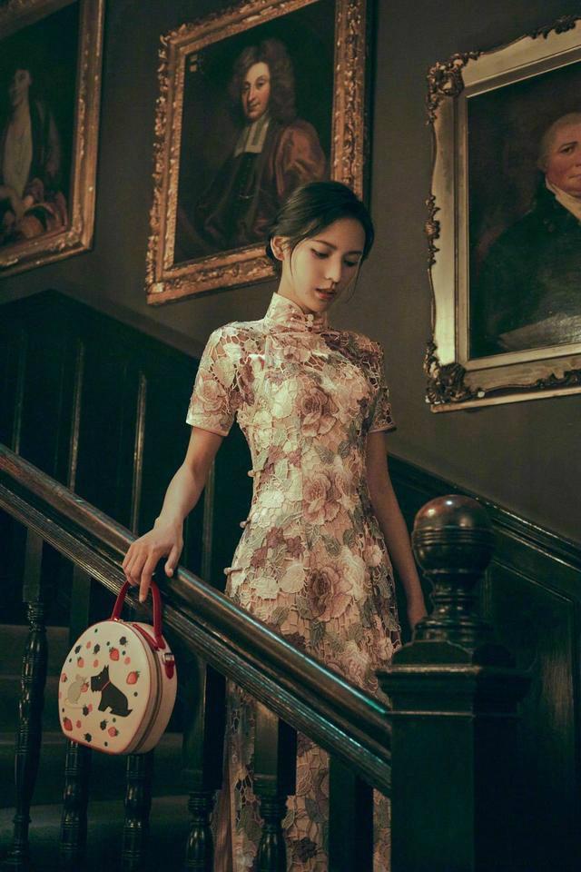 而这套旗袍,张予曦选择的则是更加温柔风的设计,蕾丝的面料风格展现若隐若现的美感,恰到好处的版型设计勾勒出完美的身材比例感,既有高贵感又有女人味,美艳而不俗气,在完美的光影和场景衬托下,仿若自民国穿越而来,气韵俱佳