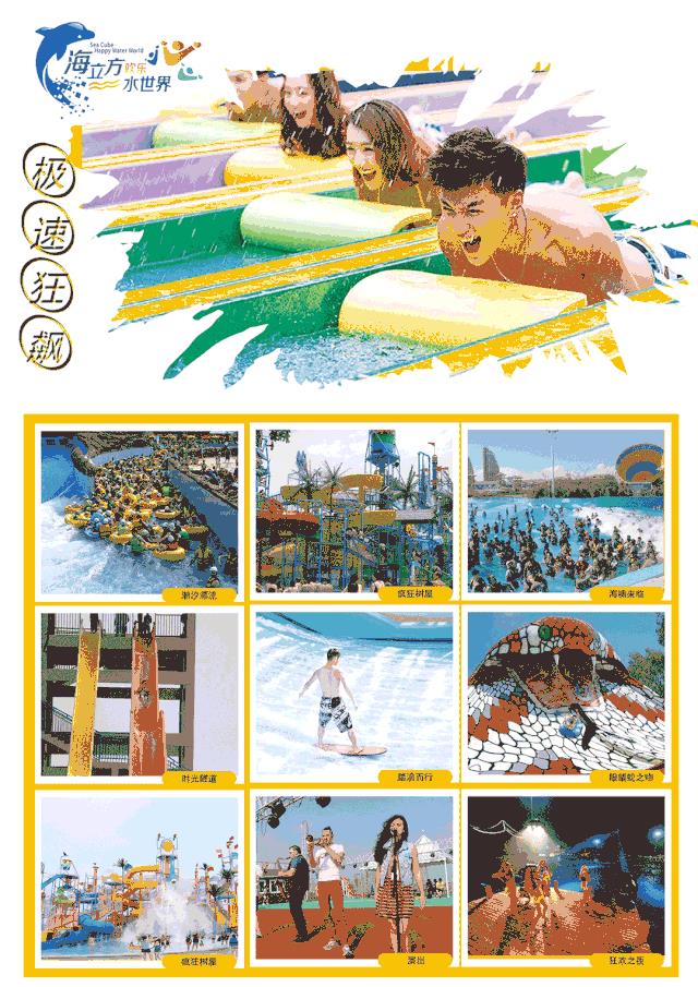 包含:魔幻漩涡、飓风墙、欢乐城堡、潮汐漂流、海啸池、时光隧道、深海龙卷风、合家欢乐梯、万道彩虹、踏浪而行、环岛漂流、网红乐园、翻江倒海、眼镜蛇之吻、未来水城、疯狂树屋等。