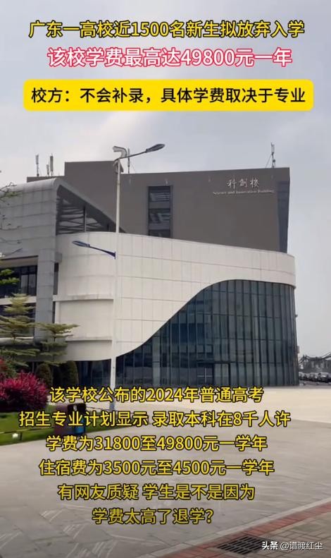 原因并不是因为学校又拿了什么大奖,也不是因为哪个毕业生创业成功了,而是因为有1477名新生放弃入学。你没看错,快1500个人!网传其中的一个重要原因竟然是——学费高达49800元。