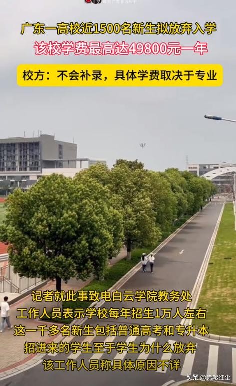 学费高达49800,广东白云学院1477名新生放弃入学?校方回应打脸