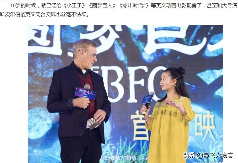 比如给《圆梦巨人》宣传照,配文是黄多多遇到大导演斯皮尔伯格都不怯场。