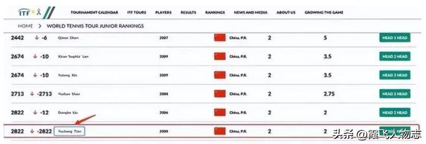 大家看着《爸爸去哪儿》里的几个娃长大,田亮女儿田雨橙专攻网球,目前中国18岁以下青少年女子球员中有世界排名的共30位,田雨橙排在第27位。