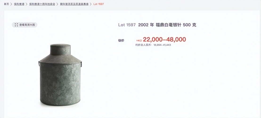 (保利拍卖会上,2002年份的白毫银针估价信息。图据易拍全球网)