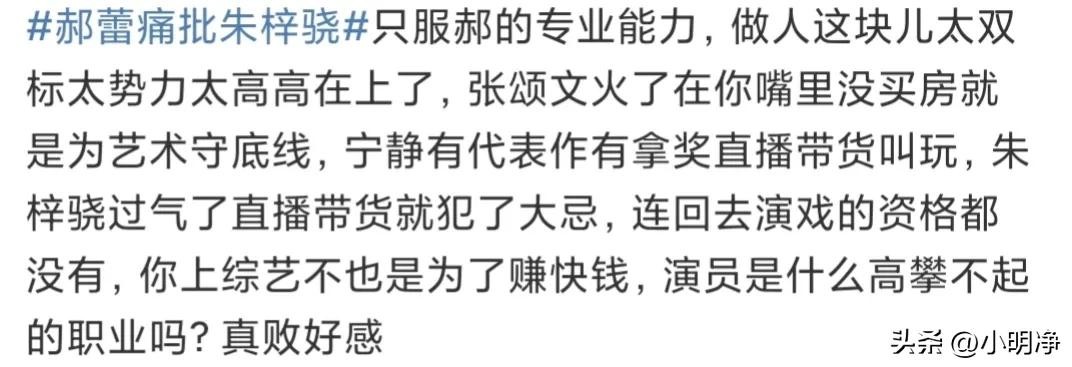 对此,网友纷纷留言称郝蕾语言过于犀利,宁静有代表作直播叫玩,朱梓骁直播就被批。