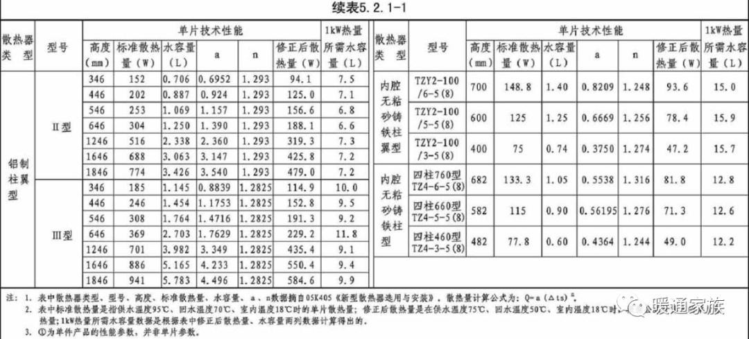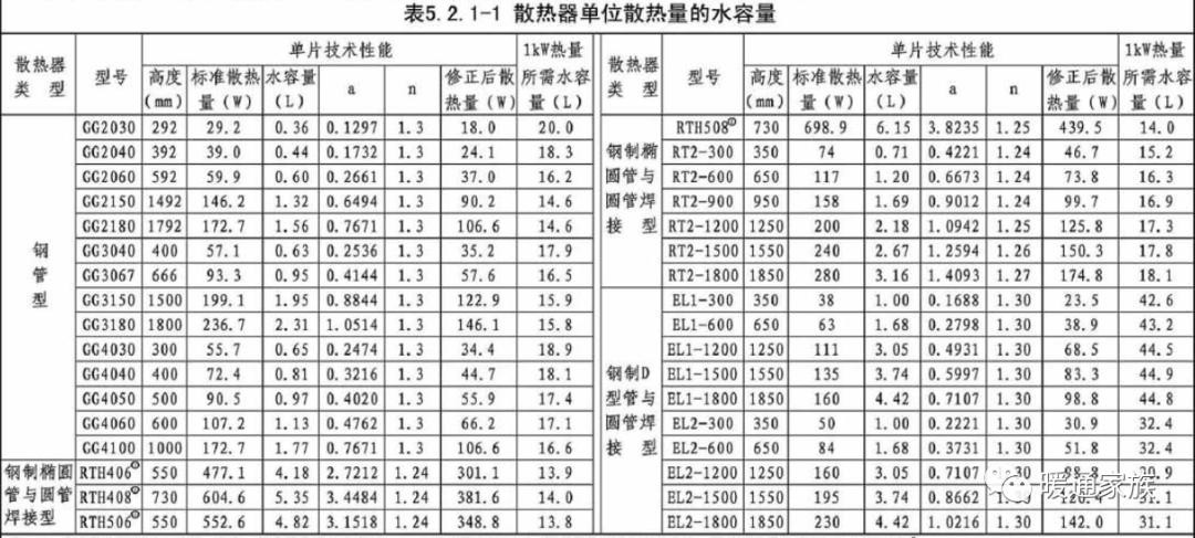 散热器供暖系统每kW散热量所需水容量可按选用的散热器类型在表5.2.1-1、表5.2.1-2中查找估算值。表中估算值未考虑散热器片数修正系数对散热量的影响,且为同侧上进下出型接管时的数据,暖通设计杜老师提醒:条件不同的情况需根据相关资料进行修正。